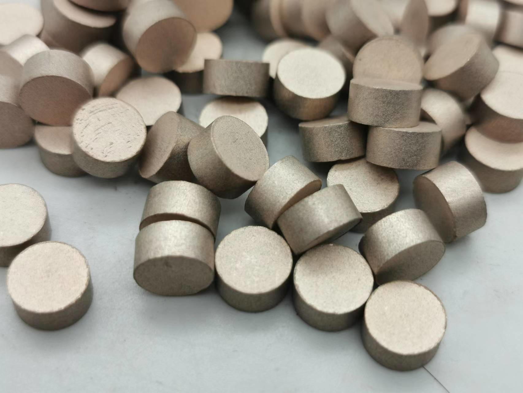 เม็ดเพชรที่มีพันธะโลหะถูกนำมาใช้ในขั้นตอนการเจียระไนสำหรับกระจกออพติคอล หน้าที่หลักของเม็ดเพชรคือการขจัดชั้นที่เสียหายและพื้นผิวที่ขรุขระซึ่งหลงเหลือจากกระบวนการกัด เพื่อให้แน่ใจว่าองค์ประกอบกระจกออพติคอลมีขนาดพื้นผิวและการตัดเฉือนที่แน่นอน ขอบเม็ดเพชรโลหะบอนด์ทำโดยการผสมผงเพชร ผงโลหะ และตัวกรอง จากนั้นจึงเผาด้วยการอัดเย็นหรือกดร้อน
