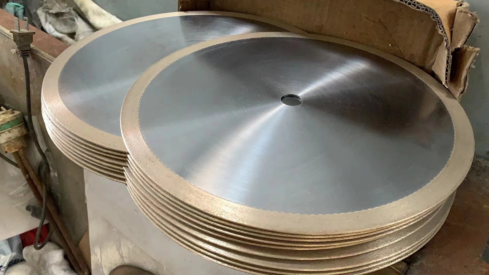 ดิสก์ตัดเพชรพันธะโลหะที่มีแกนเหล็กประกอบด้วยแผ่นเหล็กและชั้นทํางานพันธะทองแดง