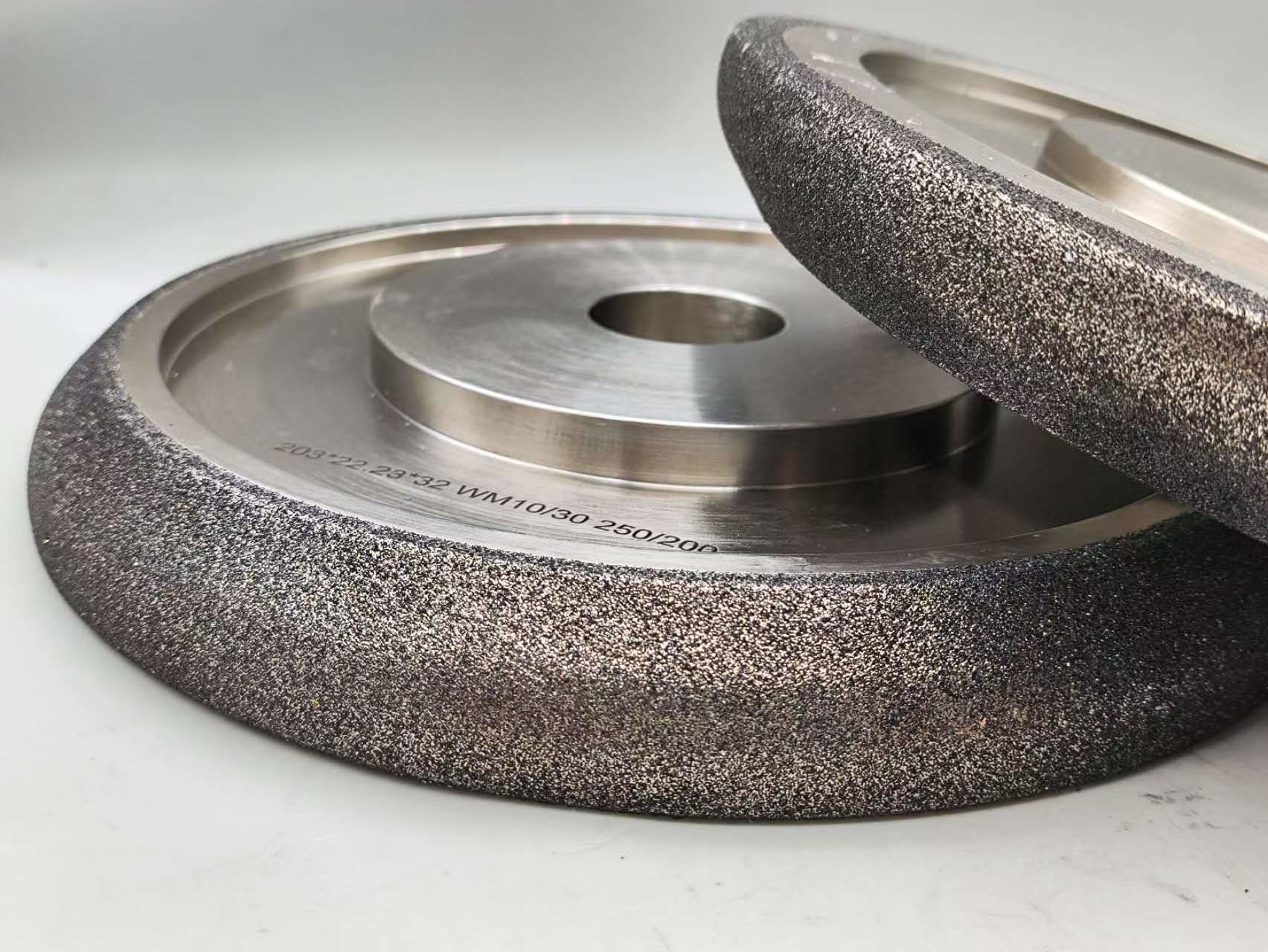 ล้อบด CBN หรือ Cubic Boron Nitride มีไฟฟ้าเคลือบและเคลือบไนเคิล การเคลือบไฟฟ้าเคลือบมีข้อดีมากมายเหนือการใช้งานอื่น ๆมันสร้างพันธะที่รุนแรงกว่าการใช้งานอื่น ๆ และจะถือรูปแบบยาวนาน. มันยังทําอัตราการกําจัดสต๊อกที่สูงกว่าและจะใช้งานเป็นเวลาหลายปี