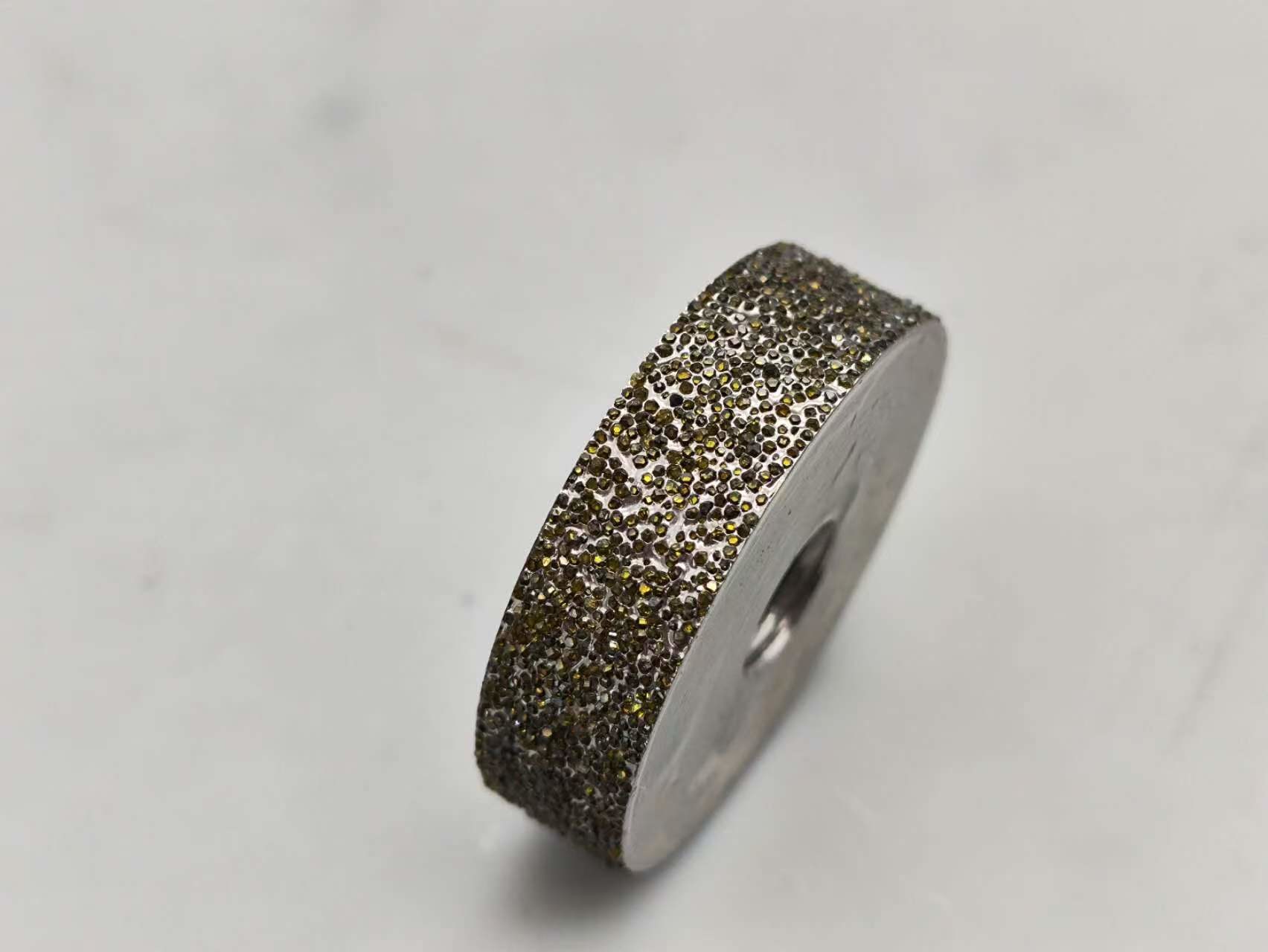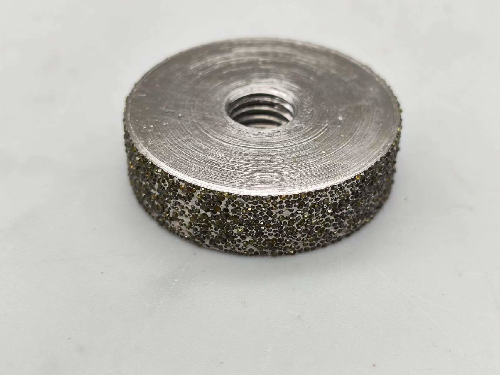 ผลิตภัณฑ์นี้มีก้อนเพชรที่เคลือบด้วยไฟฟ้าบนรูปร่างล้อเหล็กในรูปร่าง 1A1