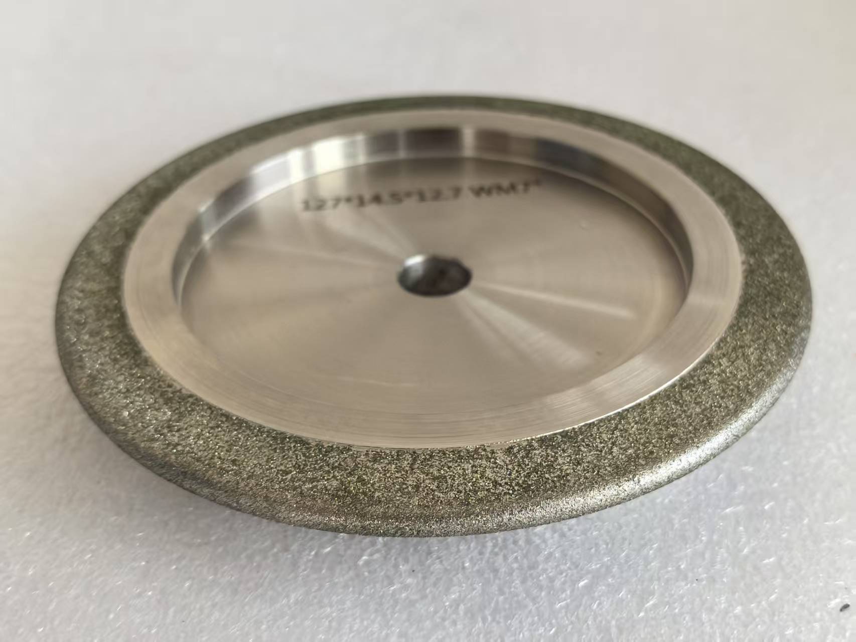 ล้อเจียรเพชรแบบยึดติดด้วยไฟฟ้าเป็นเครื่องมือขัดชนิดหนึ่งที่เม็ดเพชรถูกยึดติดกับล้อโลหะโดยใช้กระบวนการชุบด้วยไฟฟ้า ล้อชนิดนี้เป็นที่รู้จักกันในเรื่องประสิทธิภาพการเจียรสูง อายุการใช้งานยาวนาน และความสามารถในการแปรรูปวัสดุแข็งและเปราะ เช่น เซรามิก แก้ว คาร์ไบด์ และวัสดุผสมขั้นสูง การชุบด้วยไฟฟ้ามีข้อดีหลายประการเหนือการใช้งานอื่นๆ สร้างพันธะที่แข็งแกร่งกว่าการใช้งานอื่นๆ และจะคงรูปได้นานขึ้น นอกจากนี้ยังให้การกำจัดสต็อกในอัตราที่สูงขึ้นและจะใช้งานได้นานหลายปี ออกแบบมาเพื่อลับเลื่อยสายพานไม้เท่านั้นและไม่ควรใช้สำหรับการใช้งานอื่นๆ